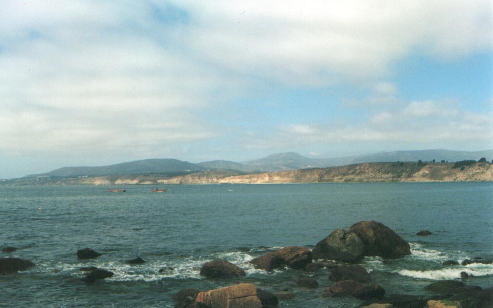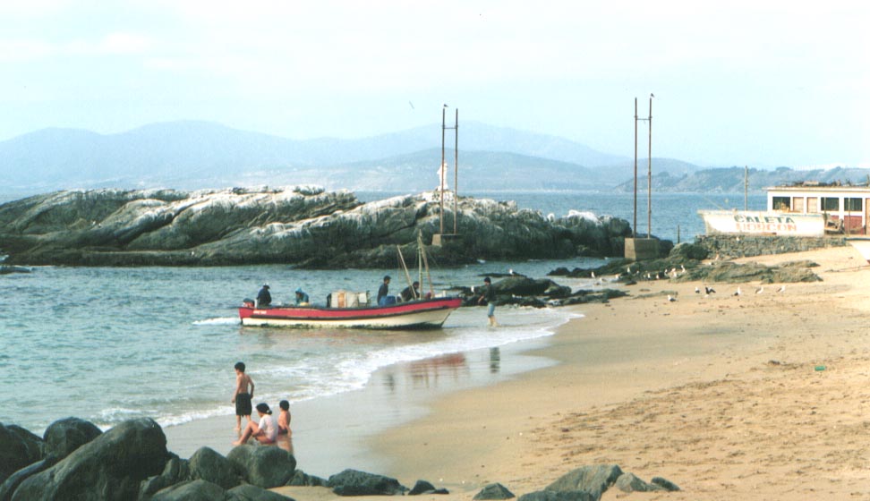 la izquierda el camino a pueblo, y en el medio Papudo y la playa larga.