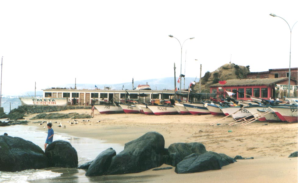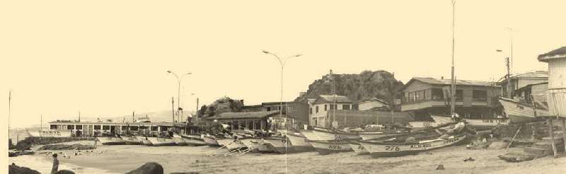 Esta foto amarilla por el tiempo.. (y el tratamiento gráfico) representa la caleta de Horcones tal como se